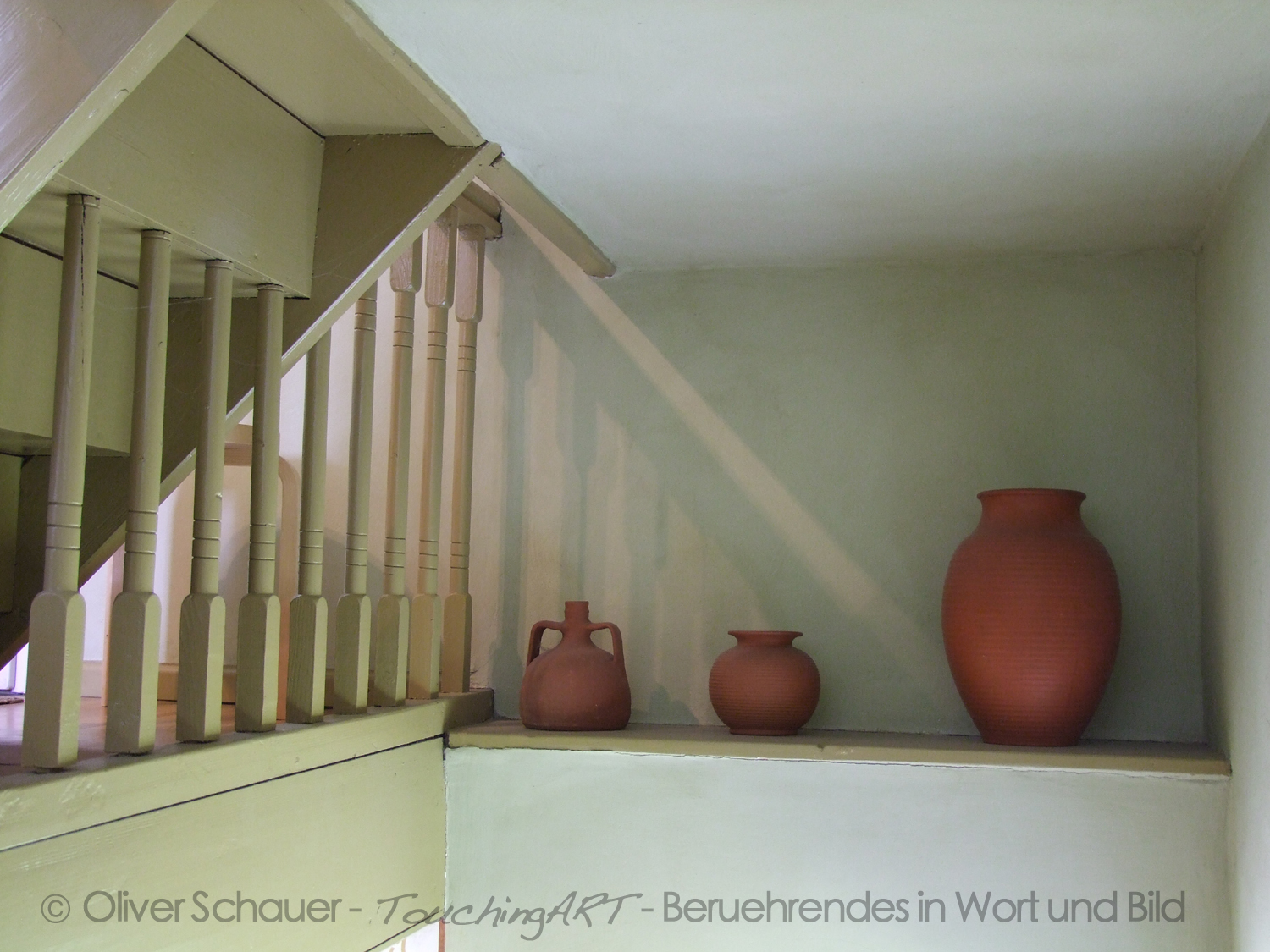 Ob der Schatten eines Baumes, einer Treppe, das Seil auf einem Kahn, die Wellen eines Sees – vieles zeigt sich uns in grafischen Formen und Mustern – ist Alltagsgegenstand und Stilleben gleichzeitig.