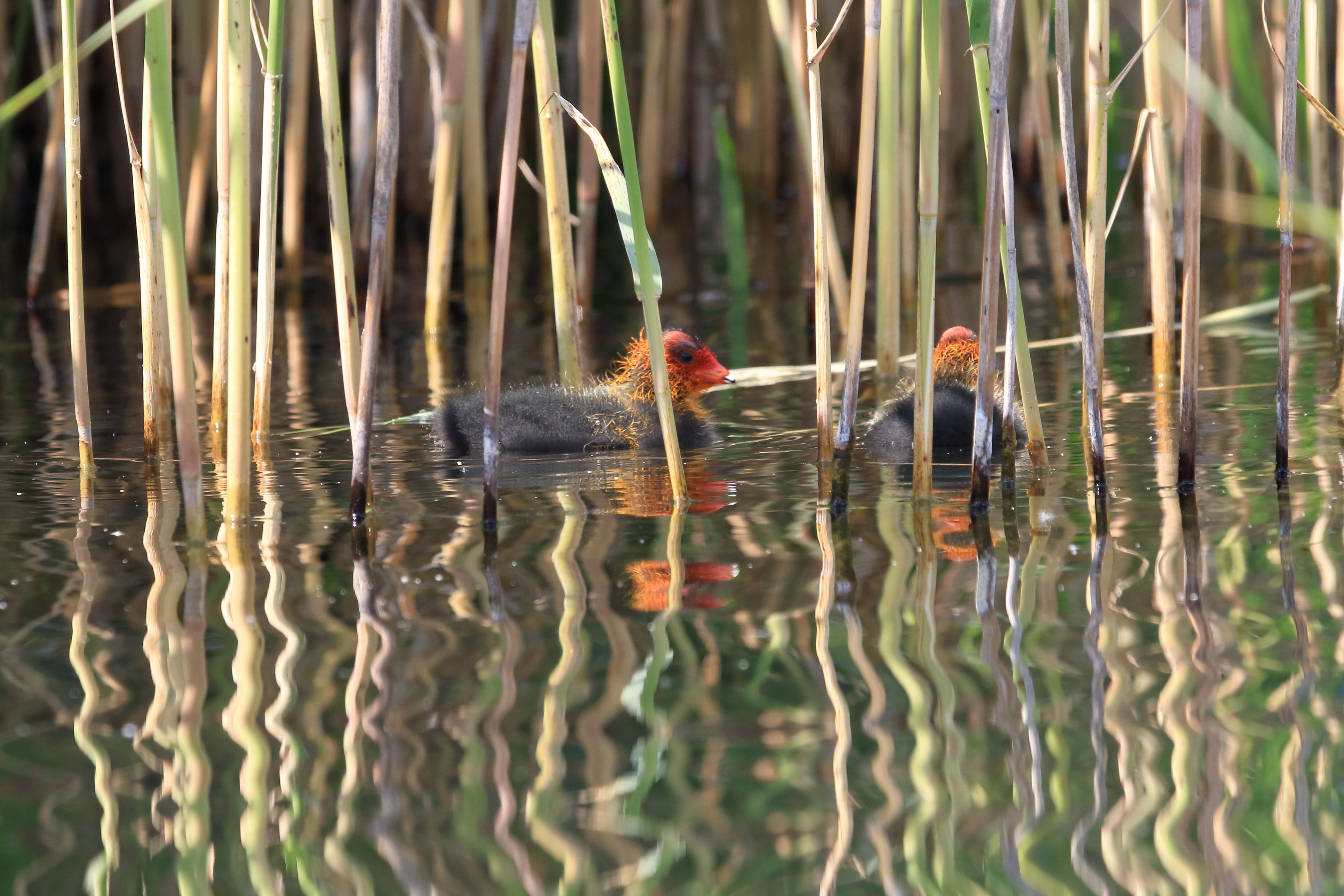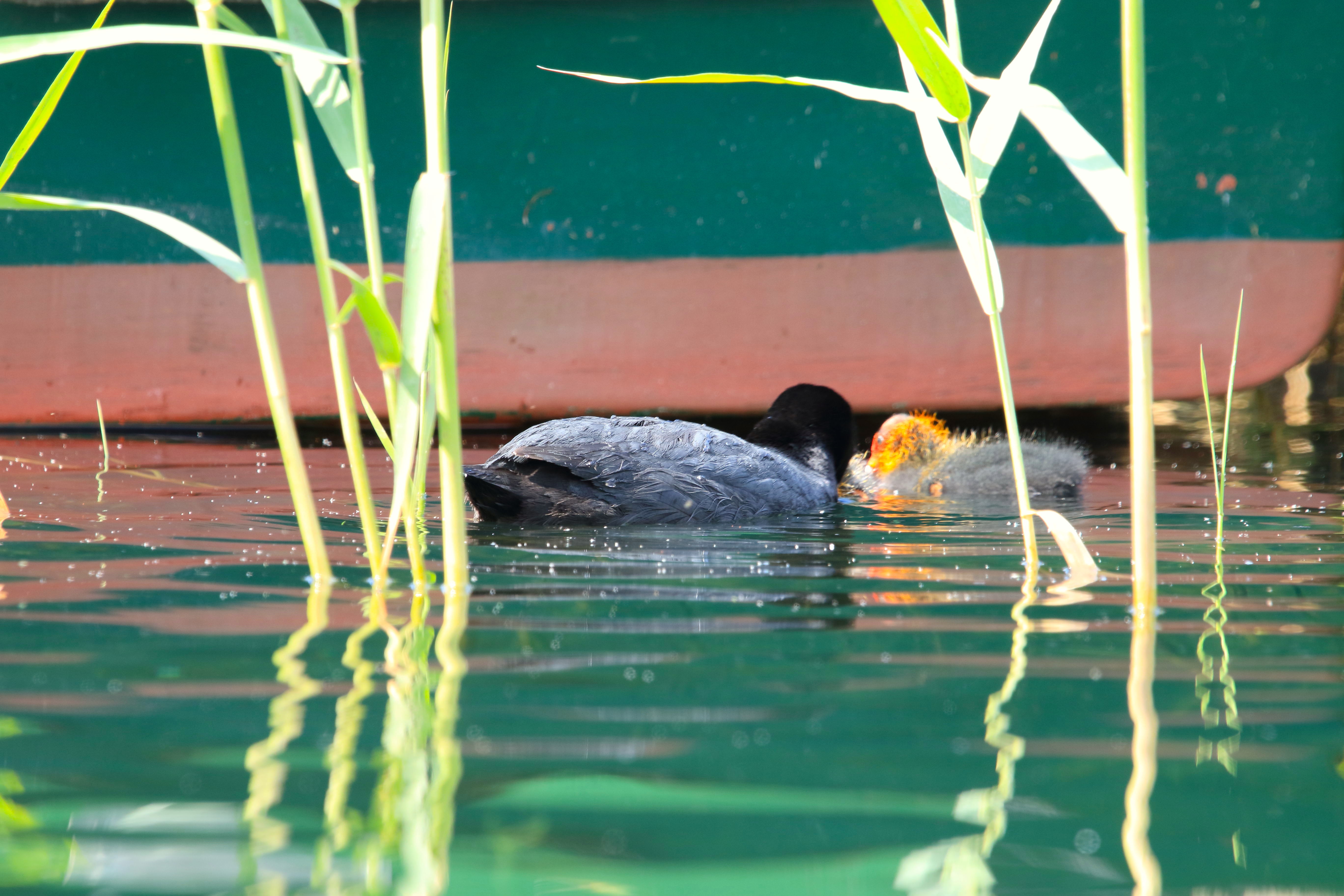 nicht besonders schön, aber lustig anzusehen ist der Nachwuchs bei den Blässhühnern